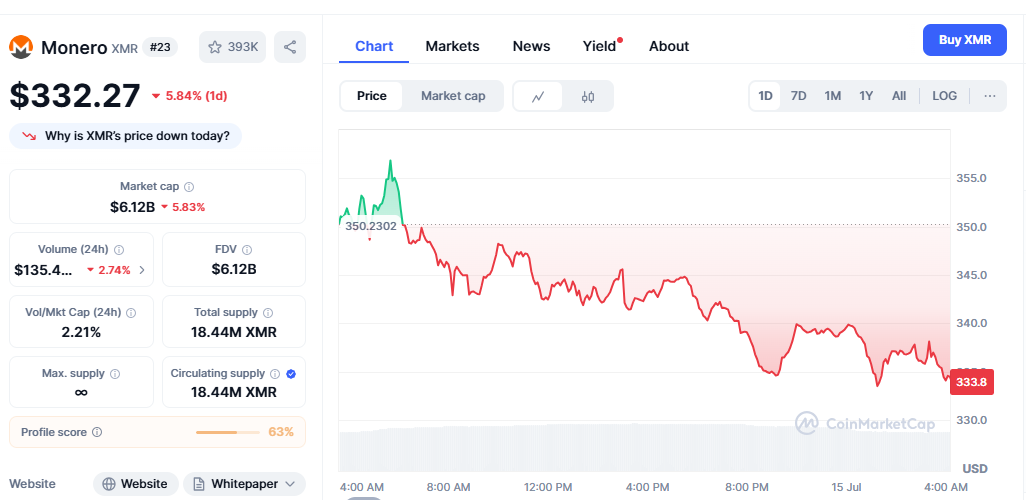 Current technical analysis reveals Monero trading within established support and resistance zones that provide insights into short-term price movements. Key support levels around $295-$314 have held during recent market corrections, while resistance levels near $421 present immediate upside targets.